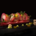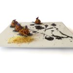 • Tataki de solomillo ibérico, crema de zanahoria vainilla, apionabo y perlas de wasabi 19.00€