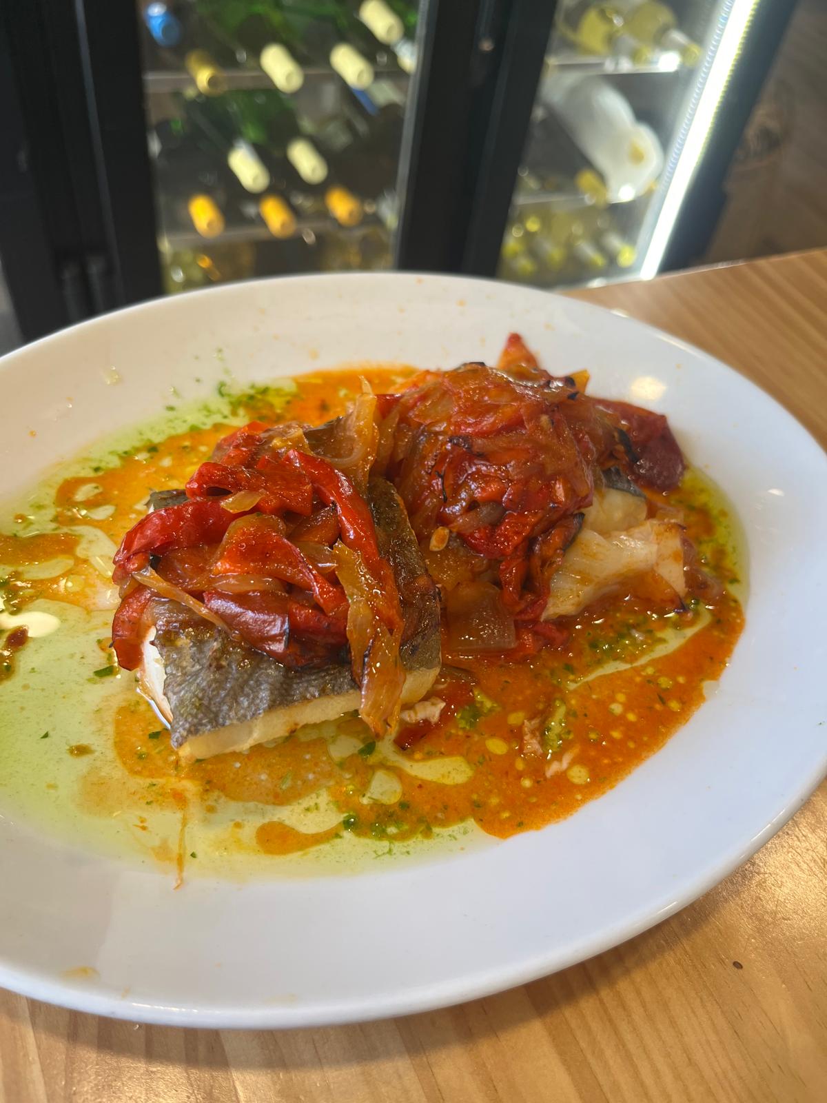 Bacalao estilo sidreria con piperrada